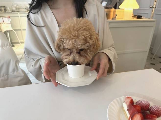 퍼푸치노를 만들 때도 마찬가지예요. 우리가 먹는 일반 우유, 저지방 우유, 딸기 우유 등은 절대 사용해선 안 됩니다. 반드시 락토프리 우유나 펫밀크를 사용해 주세요.
