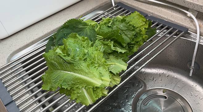 또, 손님이 와서 야채를 많이 씻어야 하는 경우 식기 건조대 이외에 야채의 물기를 빼는 용으로 사용해도 아주 좋더라고요.