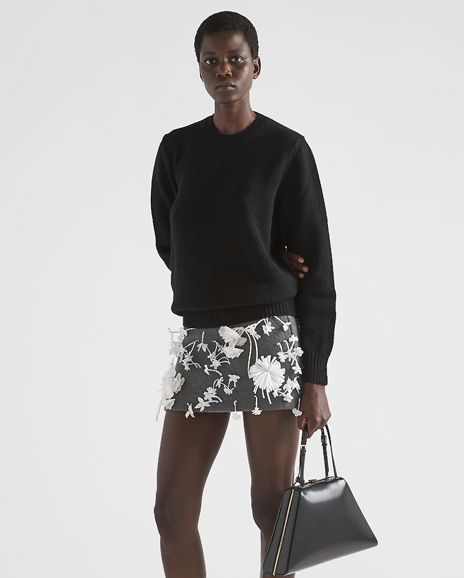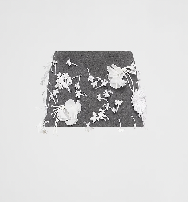 사진 속 치마 정보 - 프라다 자수 벨루어 미니 스커트 가격 700만원 후반대