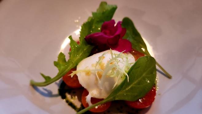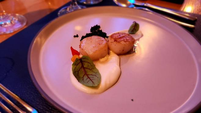 전체요리가 두 번 나오는데 셀러드의 치즈도 좋았고 관자로 아주 맛있었습니다.