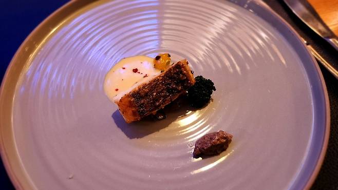 생선요리가 나오는데 방어였던 것 같은데 껍질이 정말 맛있었습니다. 소스도 좋았구요.