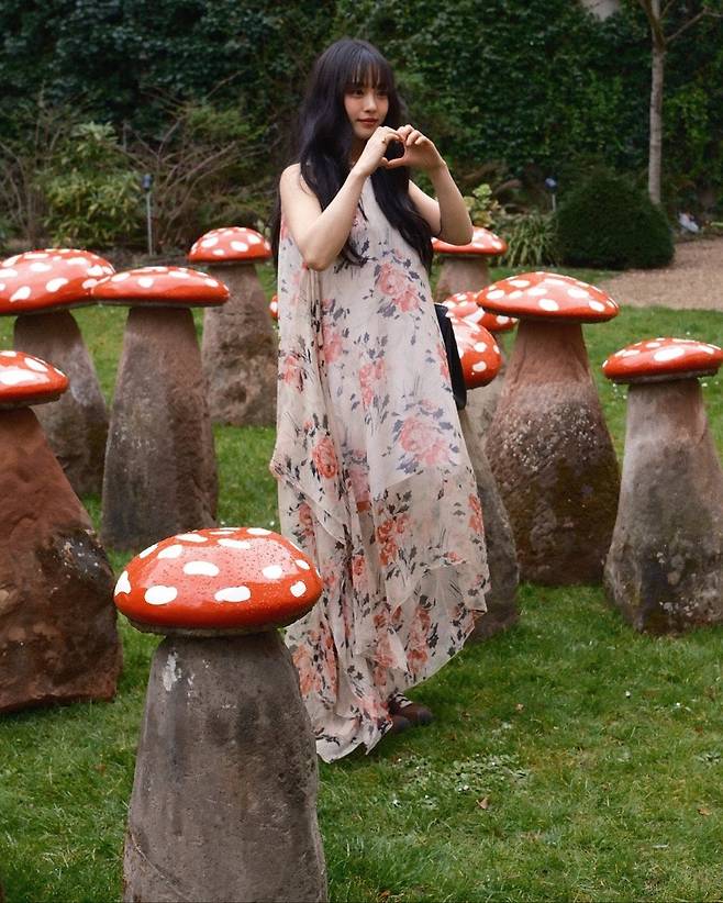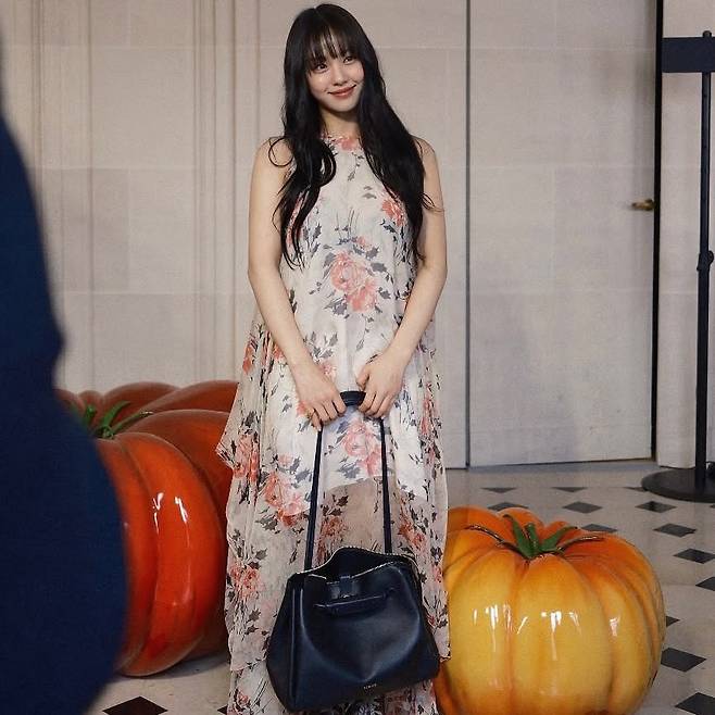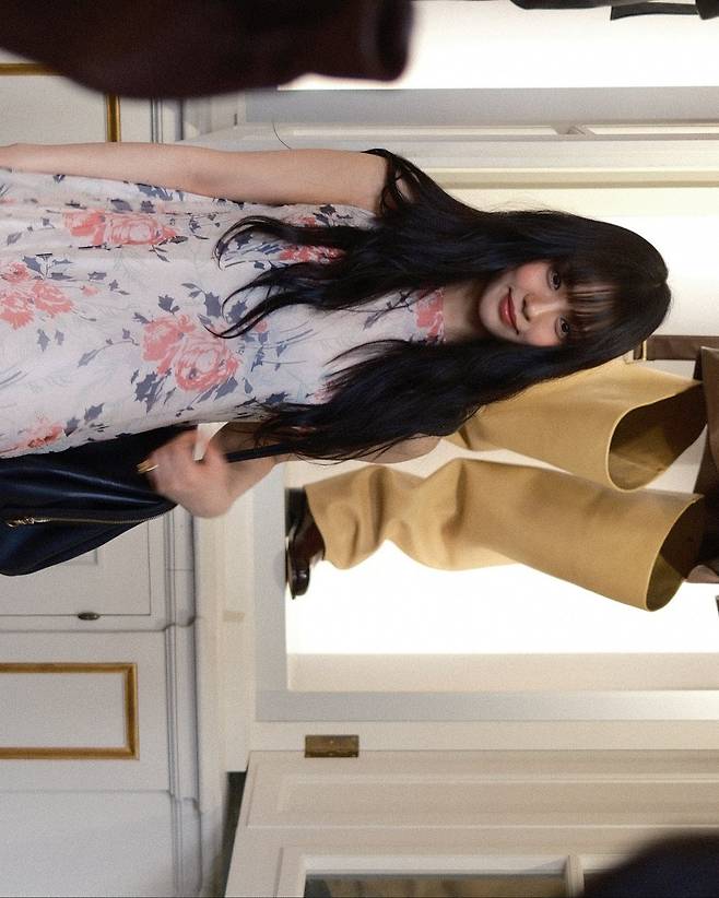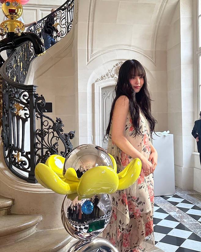 파리의 예술적인 공간에서, 자연과 예술 작품을 배경으로 한 그녀의 플라워 드레스 룩은 특별한 감성을 전해줬죠.
