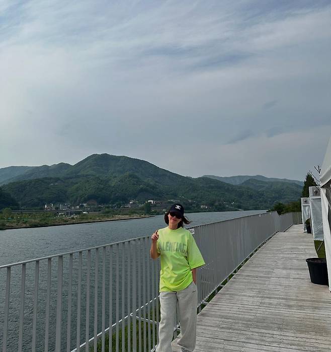 자연 속에서 포착된 김성령의 네온 컬러 캐주얼룩이 상쾌한 에너지를 전한다. 형광 그린 컬러의 오버사이즈 티셔츠와 화이트 트레이닝 팬츠의 조합은 활동적이면서도 트렌디한 스타일을 보여준다. 블랙 캡과 선글라스로 포인트를 준 스타일링은 자연 풍경과 어우러져 여유로운 분위기를 자아내고 있다. 나이에 구애받지 않는 자유로운 패션 감각으로 김성령만의 독보적인 스타일을 연출하고 있다.