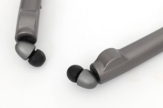 기본적인 디자인은 U자형의 일반적인 넥밴드 이어폰 특유의 디자인을 크게 벗어나지 않는다. 색상은 블랙과 그레이 투톤으로 이루어져 있는데, 유연하게 휘는 가운데 검은 부분이 우레탄으로 되어있다.