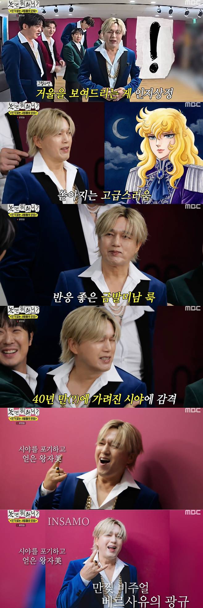 이어 그는 "오랜만에 눈을 찔려서 제대로 뜨기 힘들다"고 불편함을 토로했다. 하하는 이에 "형, 이 앞머리가 매력 포인트다. 언제 또 이런 느낌을 느껴보겠냐"고 진심어린 조언을 전해 웃음을 더했다.