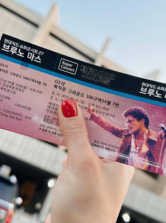 기은세는 19일 자신의 인스타그램에 “잘 놀았던 한 주, 더 행복하게 만들어준 브루노 마스”라는 글과 함께 브루노 마스 콘서트 관람 사진을 게재했다.