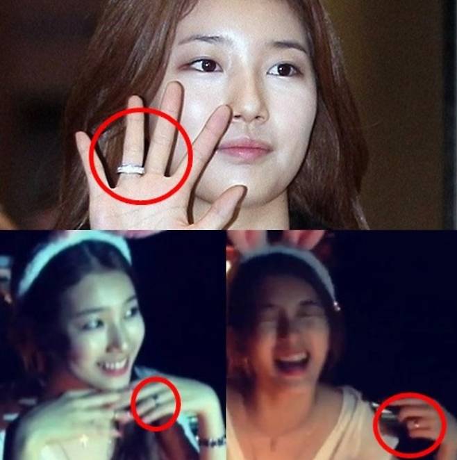 수지 생일파티 사진에서 커플링으로 보이는 반지를 끼고 있던 장면도 사람들의 의심에 힘을 실었다.