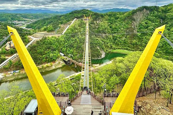 우리나라에 있는 기존 출렁다리의 2배 길이로 건널 때마다 울렁거려 아찔한 경험을 할 수 있습니다. 높이 100m, 길이 200m의 산학 보행교를 걸으며 신비로운 기암괴석을 구경하세요.