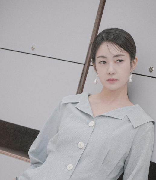 이요원은 맑고 깨끗한 피부가 돋보이는 투명 메이크업으로 청순한 분위기를 자아내고 있습니다.