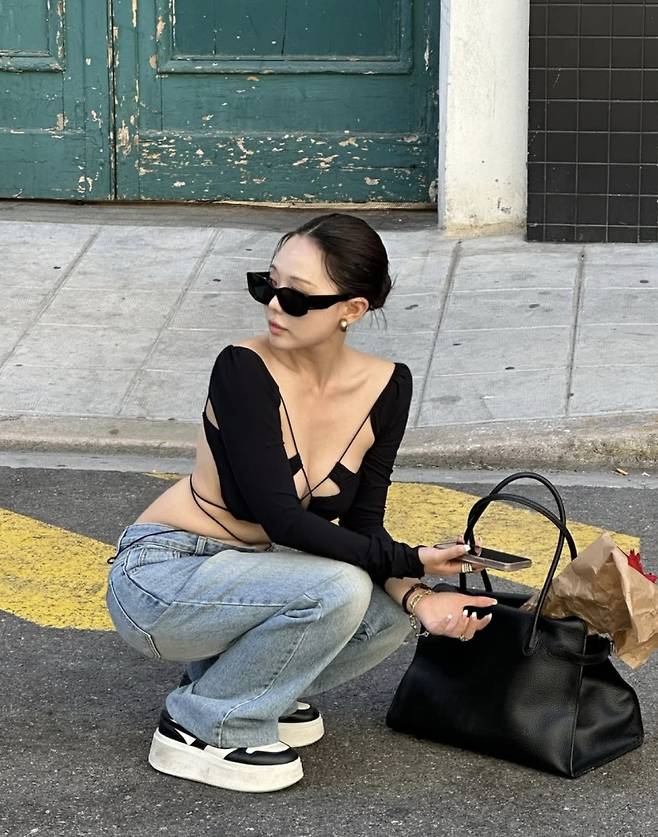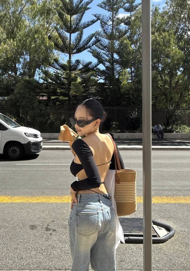 인플루언서는 이 롱슬리브 비키니를 데님 팬츠와 매치, 새로운 스트릿 무드를 연출했습니다. 그뿐만 아니라: