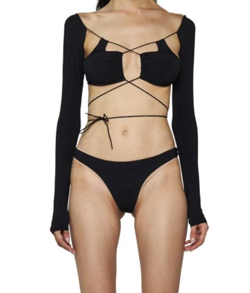 이 인플루언서가 착용한 롱슬리브 비키니는 바로 프리미엄 브랜드 AMAZUÌN(아마주인)의 제품으로, 정확한 모델명은 Noa Long-sleeved Bikini In Deep Black입니다. 다음은 제품의 주요 특징입니다: