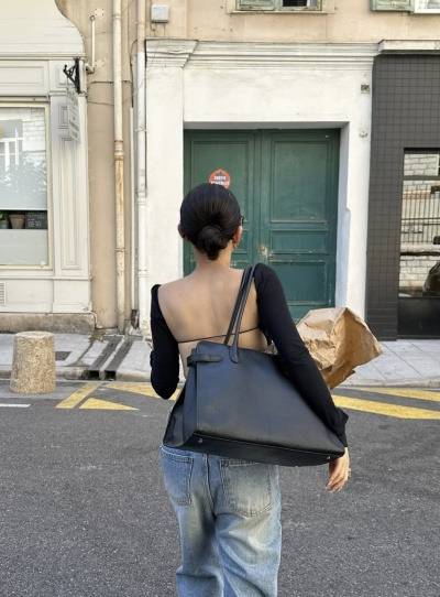 을 조합함으로써 시크함을 극대화한 미감을 완성했죠. 앞에서 보면 파격, 뒤에서는 부담감을 느낄 만큼 과감한 디테일이 시선을 사로잡는 룩이었습니다.
