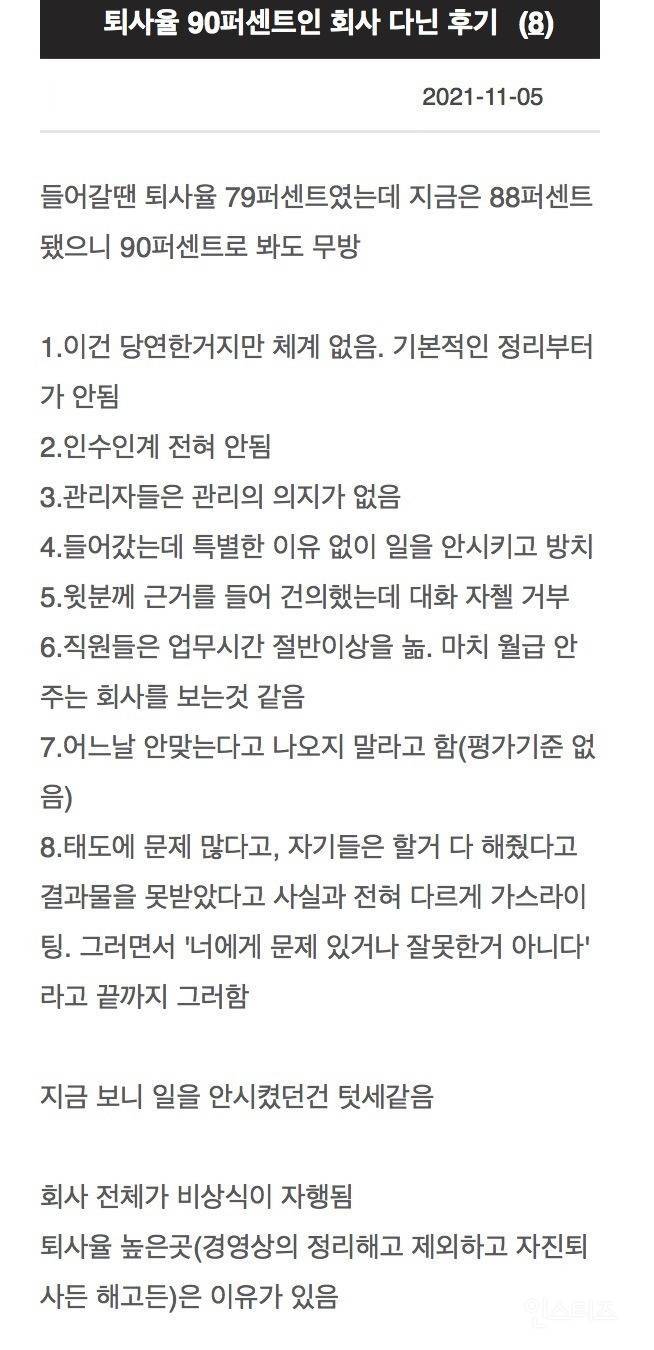 퇴사율 90퍼센트인 회사 다닌 후기