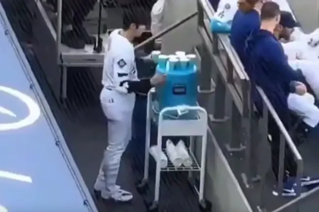 오타니의 인성 미담은 끊이지 않는다. 지난해 콜로라도 로키스와의 경기 중 오타니가 더그아웃 음료존에서 음료수 8잔을 만드는 모습이 포착됐다.