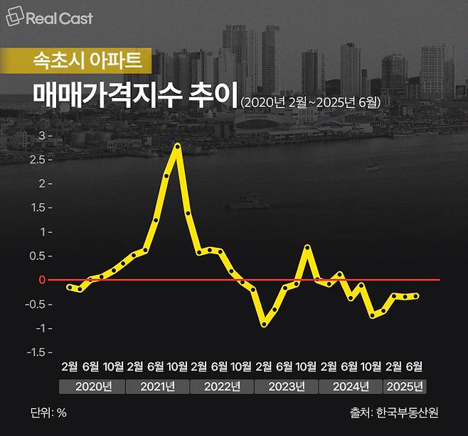 한때 ‘세컨하우스 성지’로 불리며 오션뷰 아파트 열풍을 이끌었던 속초시 부동산 시장이 장기 침체 국면에 접어들었습니다.