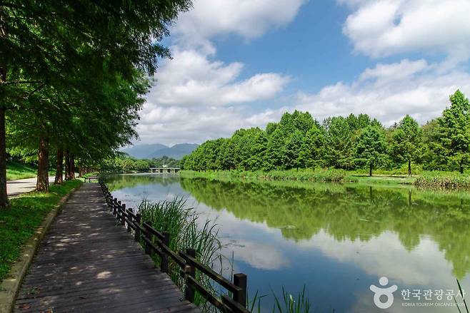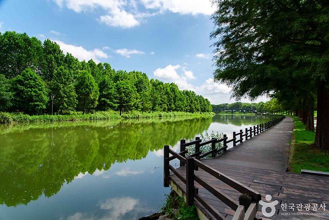 관방제는 원래 영산강 상류 담양천의 물길을 조절하기 위해 조선시대 성이성 부사와 황종림 부사가 차례로 쌓은 제방이에요.