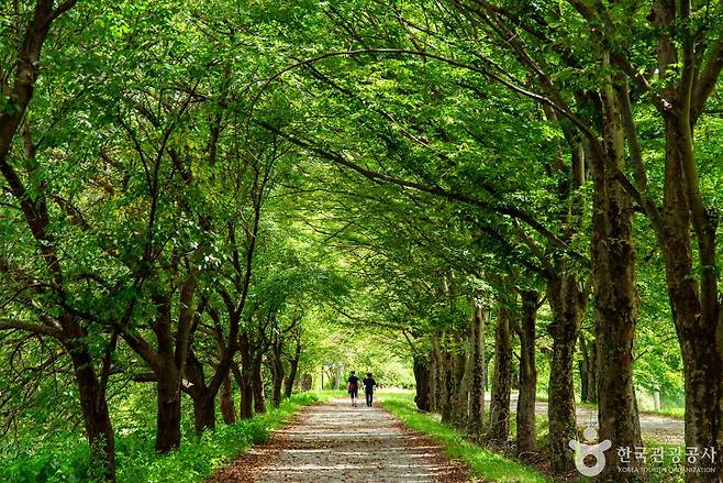 이후 심어진 나무들이 수백 년 세월을 견디며 현재는 약 420여 그루의 울창한 숲을 이루고 있답니다. 푸조나무, 팽나무, 벚나무 등 다양한 나무들이 줄지어 있어 보는 이의 마음을 편안하게 해줘요.