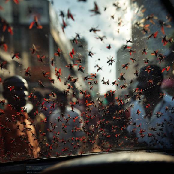 갑자기 자동차 앞유리에 검은 벌레 두 마리가 엉겨 붙은 채 나타난다. 와이퍼를 작동해도 번진 자국만 남는다. 하루 사이, 수십 마리가 범퍼와 라디에이터 그릴 사이에 끼어 있다. 가까이 보면 두 마리가 꼬리를 붙인 채 떠다니고 있는데, 공중에서 짝짓기를 하며 날아다니는 특이한 모습은 때로 불쾌감을 유발한다.