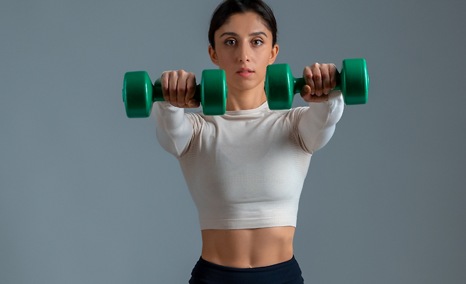 어깨 전면의 두께와 입체감을 더하고 싶다면 프론트 레이즈가 추천된다. 덤벨, 바벨, 플레이트 등 다양한 도구를 이용해 팔을 정면으로 들어올리는 동작으로, 삼각근 전면이 집중적으로 자극된다. 어깨 관절의 부담을 줄이기 위해 동작 속도를 조절하고, 팔꿈치가 어깨보다 높아지지 않도록 주의해야 한다.