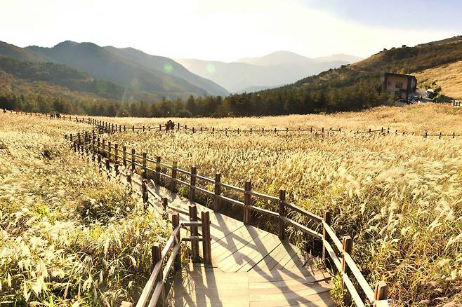 붉은 단풍과는 다른 맛이 느껴지는 황금 억새로 국내 1위를 자랑하는 명소 중의 명소다. 드넓은 평원 위로 억새가 춤추는 모습은 알프스 부럽지 않다.