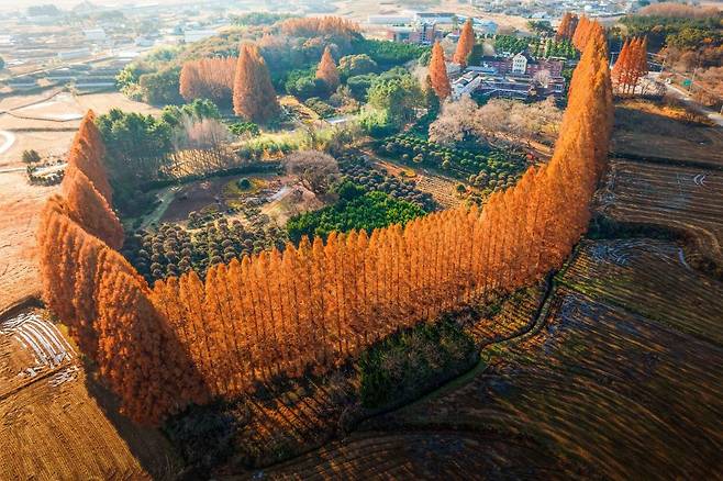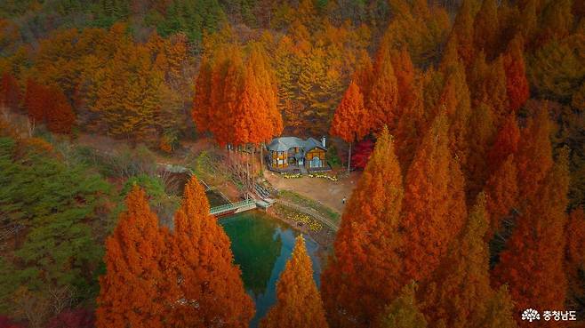 논산 메타세쿼이아길로 유명한 온빛자연휴양림도 가을 국내 여행지로 추천할 만하다. 사유지임에도 불구하고 연중무휴 무료로 운영되며, 쑥쑥 뻗어난 단풍 메타세쿼이아가 가을의 화려함을 뽐낸다. 노란 오두막집과 인생샷을 남겨보자.