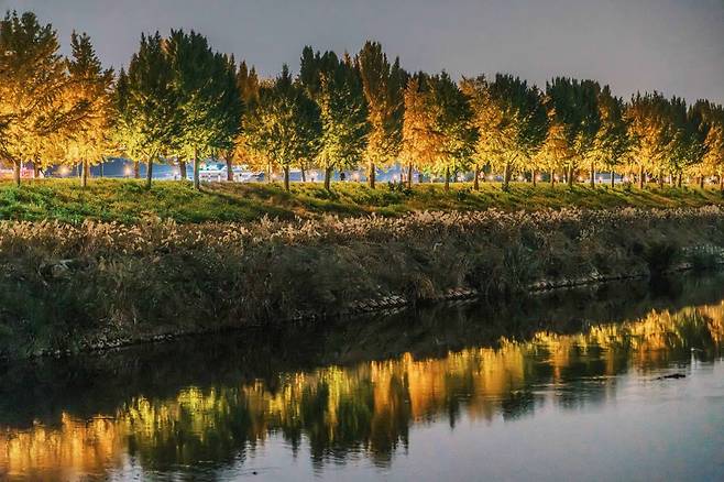 약 2.2km 구간에 350여 그루의 은행나무가 줄지어 서 있는 모습이 장관인 단풍 가로수 길 명소다. 아산 시민의 쉼터로 전국에서 찾을 정도로 10대 가로수 길의 모습을 선보인다.