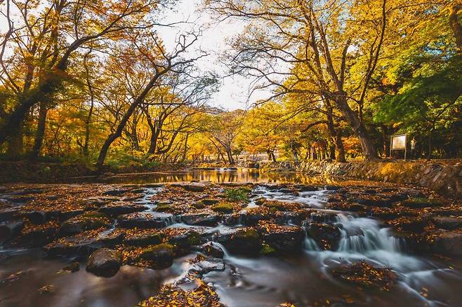 선운사 주변의 도솔계곡을 따라 이어지는 단풍길은 한국 전통의 수묵화 속 한 장면이다. 고즈넉한 산사의 풍경과 단풍이 어우러져 운치 있는 가을 국내 여행지로 선택하기에 부족함이 없는 장소다.