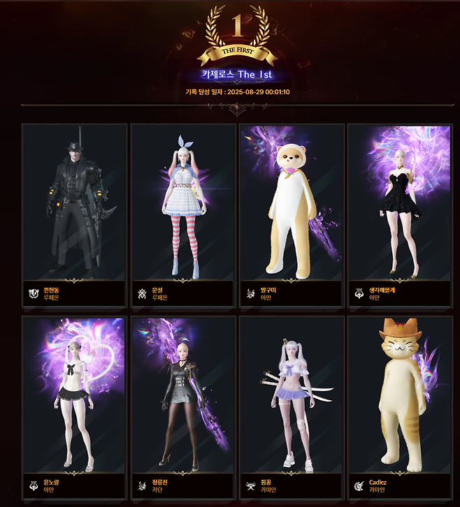 카제로스의 영광스러운 더 퍼스트 클리어가 나왔다. 8월 20일 업데이트 이후로 9일, 약 205시간이 걸렸다.
