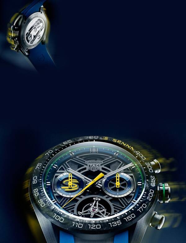 태그호이어는 아일톤 세나라는 레이싱의 전설과 함께 또 한 번 특별한 시계를 선보였다. 새롭게 출시된 '까레라 크로노그래프 투르비용×세나'는 고급 스포츠 워치의 상징인 까레라 라인에 투르비용 메커니즘을 접목해 속도와 정밀성을 동시에 담은 모델로 재탄생했다.