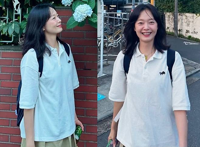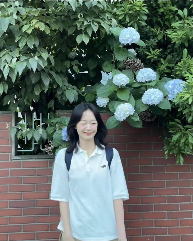 여기에 블랙 백팩과 캐주얼한 스니커즈로 청량한 분위기를 완성했으며, 자연스러운 생머리와 민낯 같은 메이크업, 수줍은 미소까지 더해져 마치 애니메이션 속 주인공처럼 사랑스러운 느낌을 자아냈습니다.