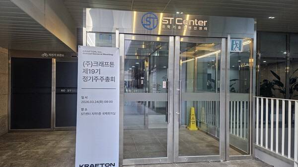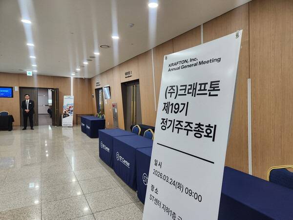 24일 서울 강남구 한국과학기술회관에서 열린 크래프톤 주주총회가 해명의 자리로 끝났다. 2025년 연결 매출 3조 3266억원, 영업이익 1조 544억원으로 창사 이래 최대 실적을 발표하는 자리였지만 분위기는 냉담했다. 주주들은 최대 실적에도 주가가 왜 이러냐며 질타했고 김창한 크래프톤 대표는 연임에는 성공했지만 해명에 진땀을 흘렸다.