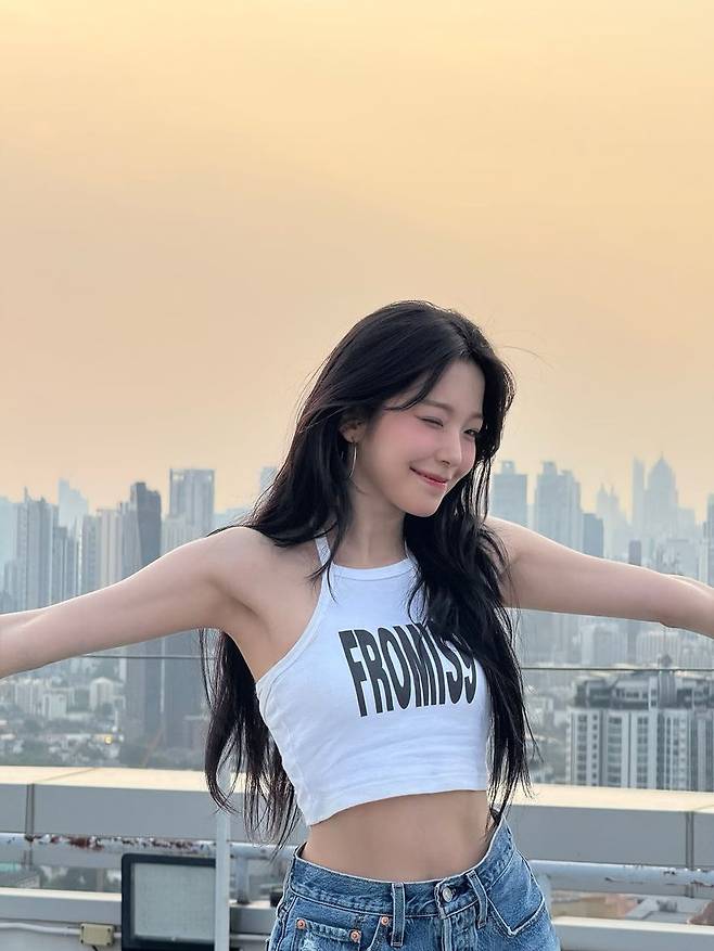 백지헌의 루프탑 셀카가 화제를 모은다. 따스한 노을빛 아래 펼쳐진 도심 스카이라인을 배경으로, 그녀는 환한 미소와 함께 상큼한 에너지를 전했다. ‘FROMIS9’ 레터링이 돋보이는 크롭탑은 여름 감성을 극대화하며 눈길을 사로잡았다.