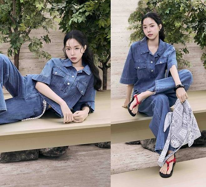 올 여름에는 데님 셔츠와 팬츠 조합의 청청 패션이 다수의 화보와 셀럽패션에서 눈에 띄고 있다.