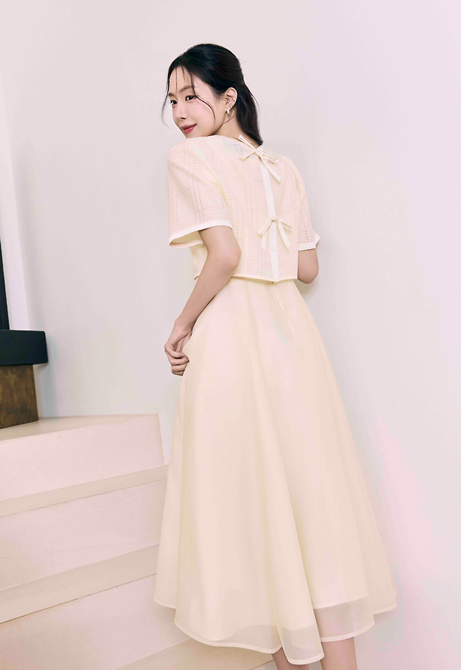 스몰 웨딩, 셀프 웨딩, 브라이덜 샤워, 피로연 파티, 베이비 샤워 등 지극히 개인적인 파티를 위한 로맨틱한 무드를 강조한 세레모니룩으로 일상속 하객룩 또는 오피스룩으로 활용이 가능한 편이다.