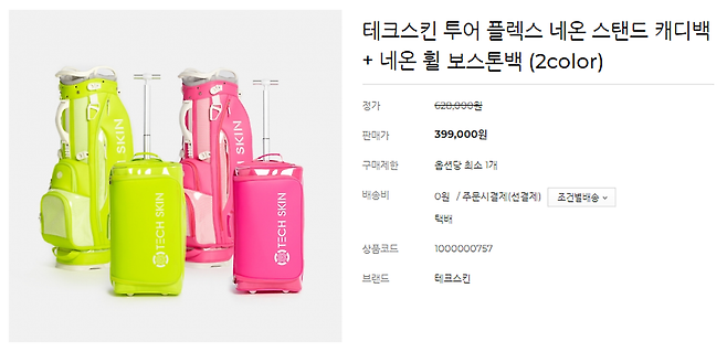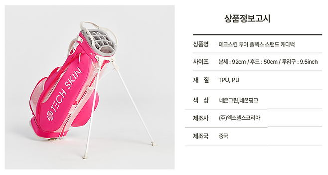 - 제품명 및 스펙 : 테크스킨 TOUR FLEX NEON PINK 캐디 스탠드 백