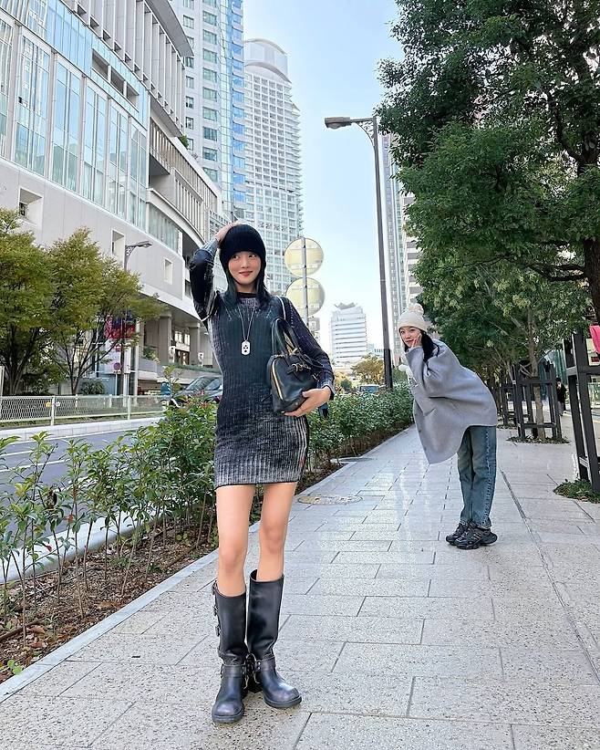 포인트로 모자까지 써주면 완전 패피 그 자체