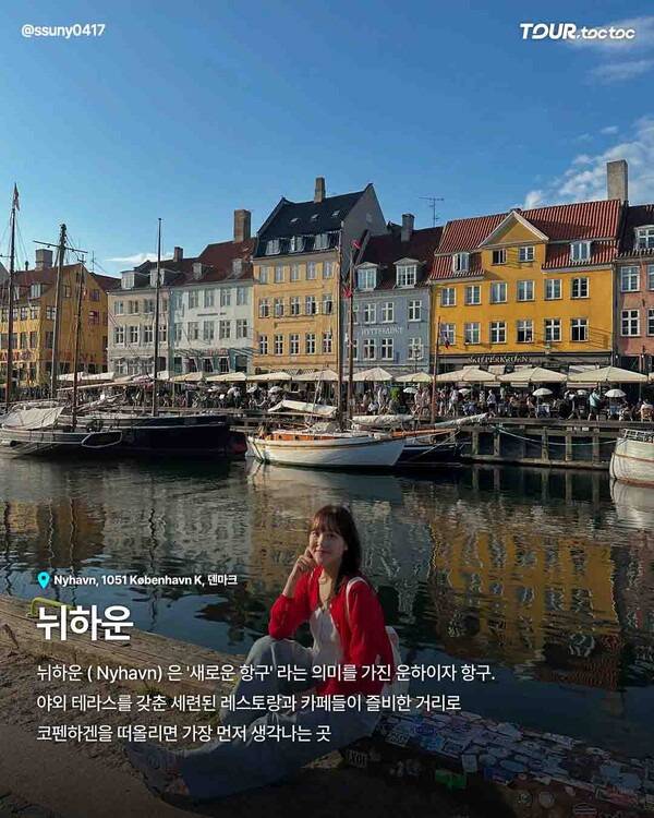 가장 먼저 소개할 곳은 뉘하운입니다. 뉘하운은 알록달록한 건물과 운하가 어우러진 대표적인 코펜하겐 가볼만한곳입니다. 낮에는 햇살 가득한 풍경을, 저녁에는 분위기 좋은 레스토랑과 카페를 즐길 수 있습니다. 실제 여행자들이 코펜하겐 여행코스에서 꼭 추천하는 장소이죠.
