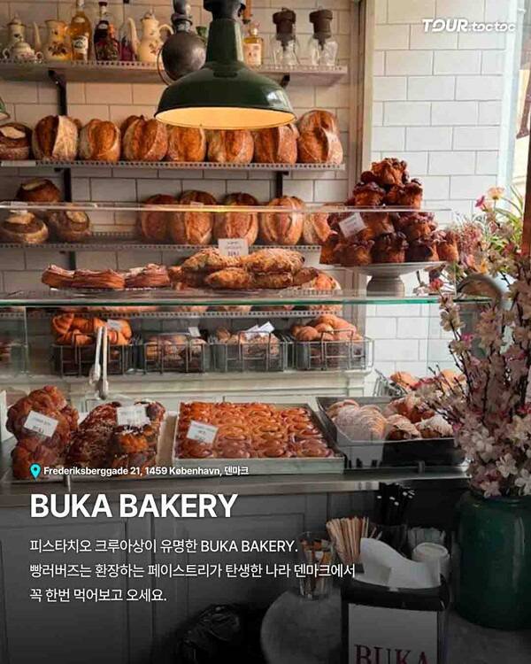 베이커리도 코펜하겐 여행에서 빠질 수 없습니다. BUKA Bakery는 피스타치오 크루아상으로 유명하고 많은 후기에 “줄 서서 먹을 만하다”는 이야기가 많습니다. 코펜하겐 가볼만한곳으로 늘 언급되는 이유가 분명합니다.