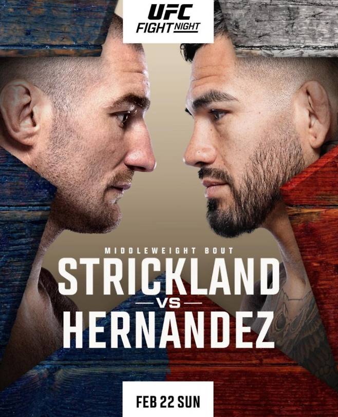 UFC는 22일(한국시간) 'UFC 파이트 나이트: 스트릭랜드 vs 에르난데스'를 개최한다. 이번 대회의 메인 이벤트에서는 물러설 수 없는 결전을 앞둔 UFC 미들급 랭킹 3위 션 스트릭랜드(29승 7패)와 4위 앤서니 에르난데스(15승 2패 1무효)가 옥타곤에 오른다.