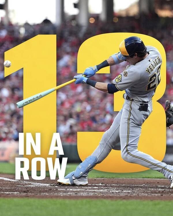 이제 밀워키는 신시내티 2차전에 나서 구단 신기록 14연승에 도전한다.