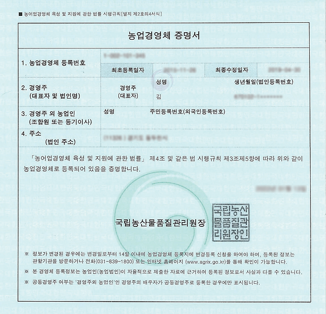 농업경영체 역시 담당자가 농사를 짓는지 여부를 확인하기 때문에 밭에 작물이 심어져있어야 하기 때문에 겨울에는 신청하지 않는 것이 좋습니다.
