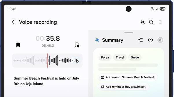 한 손에 쏙 들어오는 AI 어시스턴트: 커버 디스플레이에서 "강남역 근처 회식 장소 3곳 추천해줘"라고 말하면 음식점 리스트가 나타나고, "노트에 저장하고 캘린더에 추가해줘"라고 하면 앱 간 연동까지 자동 처리됩니다.