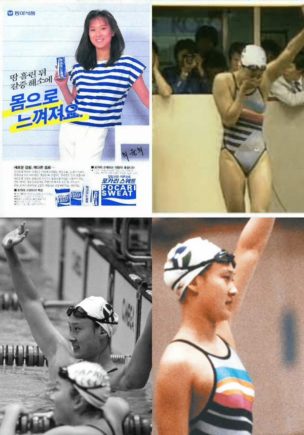 지난 1987년부터 1988년까지 광고 모델을 맡은 제1대 포카리걸은 수영선수 최윤희였습니다. 불과 만 15살의 나이에 1982년 뉴델리 아시안 게임에서 3관왕을 차지하며 일찍이 국민 여동생의 위치에 오르며 '아시아의 인어'라는 별명과 함께 당시 최고의 여자 스포츠 스타가 되었던 최윤희였는데요.