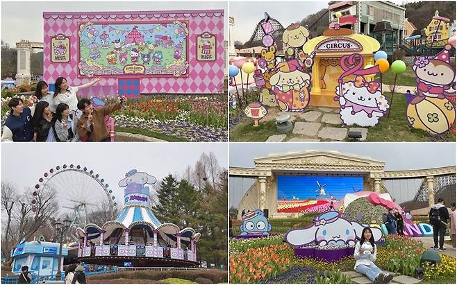튤립축제의 메인 무대는 ‘포시즌스가든’이다. 포시즌스가든에 들어서자마자, 화사한 튤립과 산리오 캐릭터들이 기자를 맞이했다.