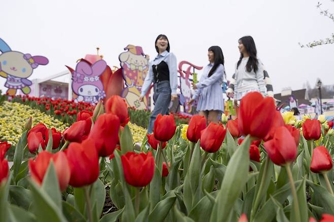 국내 최초로 진행하는 산리오캐릭터즈 야외 공연도 이번 튤립축제의 또 다른 볼거리다. 시나모롤·헬로키티·쿠로미·폼폼푸린이 등장하는 ‘산리오캐릭터즈 댄스타임’은 하루 두 차례(오후 12시, 5시) 관람객을 만난다.