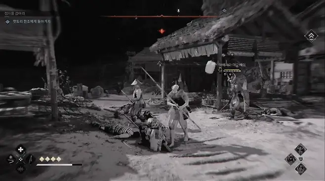 오쿠니 일당의 부관들과 싸우는, 보스전도 마찬가지입니다. 대부분 본편의 암살 타겟을 마주했을 때와 별다른 차이가 없어 그 특색이 부각되지 않는 느낌입니다. 한 가지 예외라면 오쿠니의 부하 암살자인 '노와키'가 있는데, 소리로 보스의 위치를 파악하거나 여러 조각상 사이에 숨어있는 본체를 공격하는 등 기믹은 꽤 신선했습니다. 그 외에는, 심지어 보스전조차 없는 보스가 나오는 등 대체로 평이한 전개였습니다.
