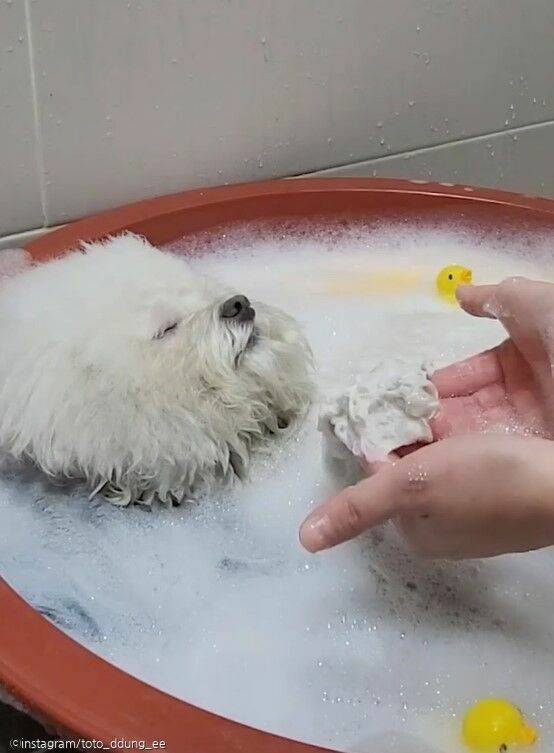 토토는 5살이 된 비숑 강아지로 매번 예상치 못한 행동으로 보호자를 웃게 하는 아이란다.