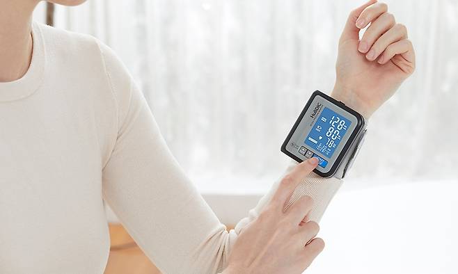손목형 손목에 착용하는 혈압 측정 방식이다. 팔뚝형에 비해 부피가 작고 가벼워 보관과 휴대가 간편하며, 집에서는 물론 외부에서도 수시로 혈압을 측정할 수 있어 활용도가 높다. 다만 손목 혈관이 심장에서 멀어 측정 자세나 온도 변화에 따라 정확도에 차이가 날 수 있다.