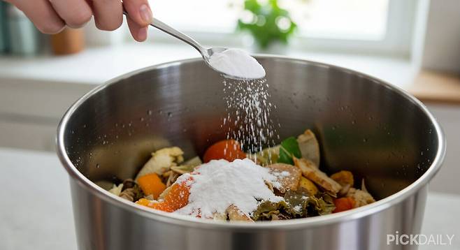 음식물 쓰레기에서 올라오는 악취의 주요 원인은 산성 유기물 분해 과정에서 발생하는 가스다. 이때 베이킹소다를 뿌려주면 약알칼리 성분이 중화 반응을 일으켜 냄새를 줄여준다.