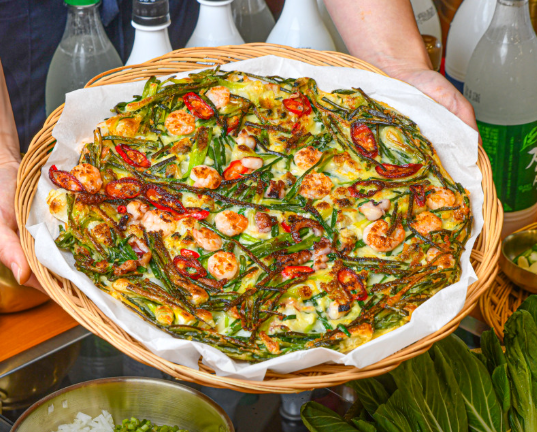 특히 35cm 대왕 해물파전은 낙지, 새우, 조개 등 해물이 가득해 단체 모임에서도 만족도가 높습니다.